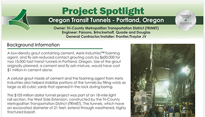Aerix Industries engineered foam concentrates enable lightweight cellular concrete production for tunnel backfill and annular filling applications. Engineers specify low-density cellular concrete to stabilize liners, reduce settlement, and control structural loading. Specialty contractors achieve long-distance pumpability and consistent density using Aerix Industries foam systems. This solution supports both new tunneling construction and rehabilitation projects.